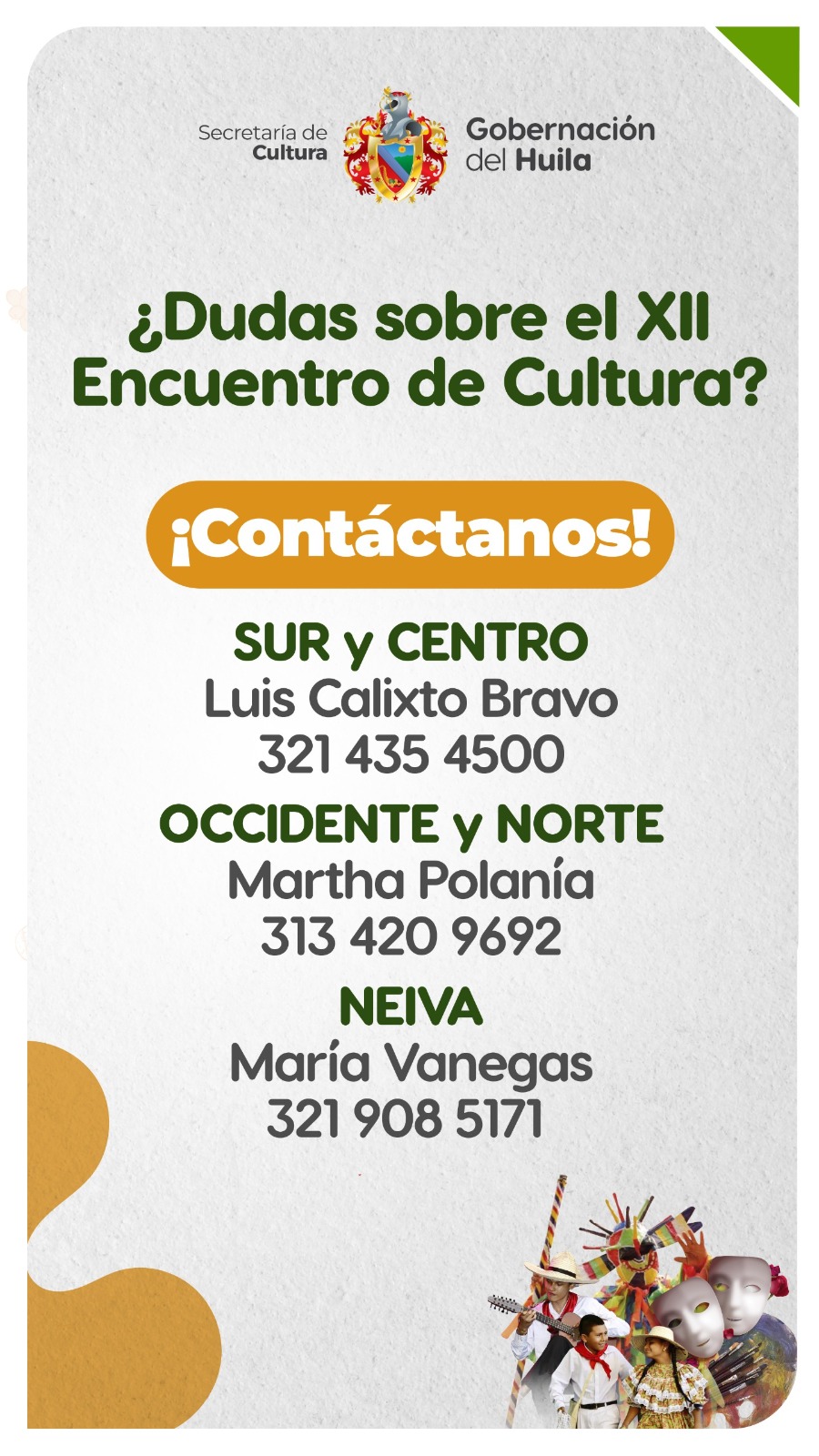 Miguel Hernán Fajardo Bonilla, vicepresidente de la Corporación Folclórica y Musical Banda de los Borrachos, recuerda a todos los trabajadores de la cultura, que aún pueden inscribirse en el link que ha ofrecido la gobernación del Huila – secretaría de cultura departamental: https://culturahuila.com/evento/encuentro-cultura?step=evento