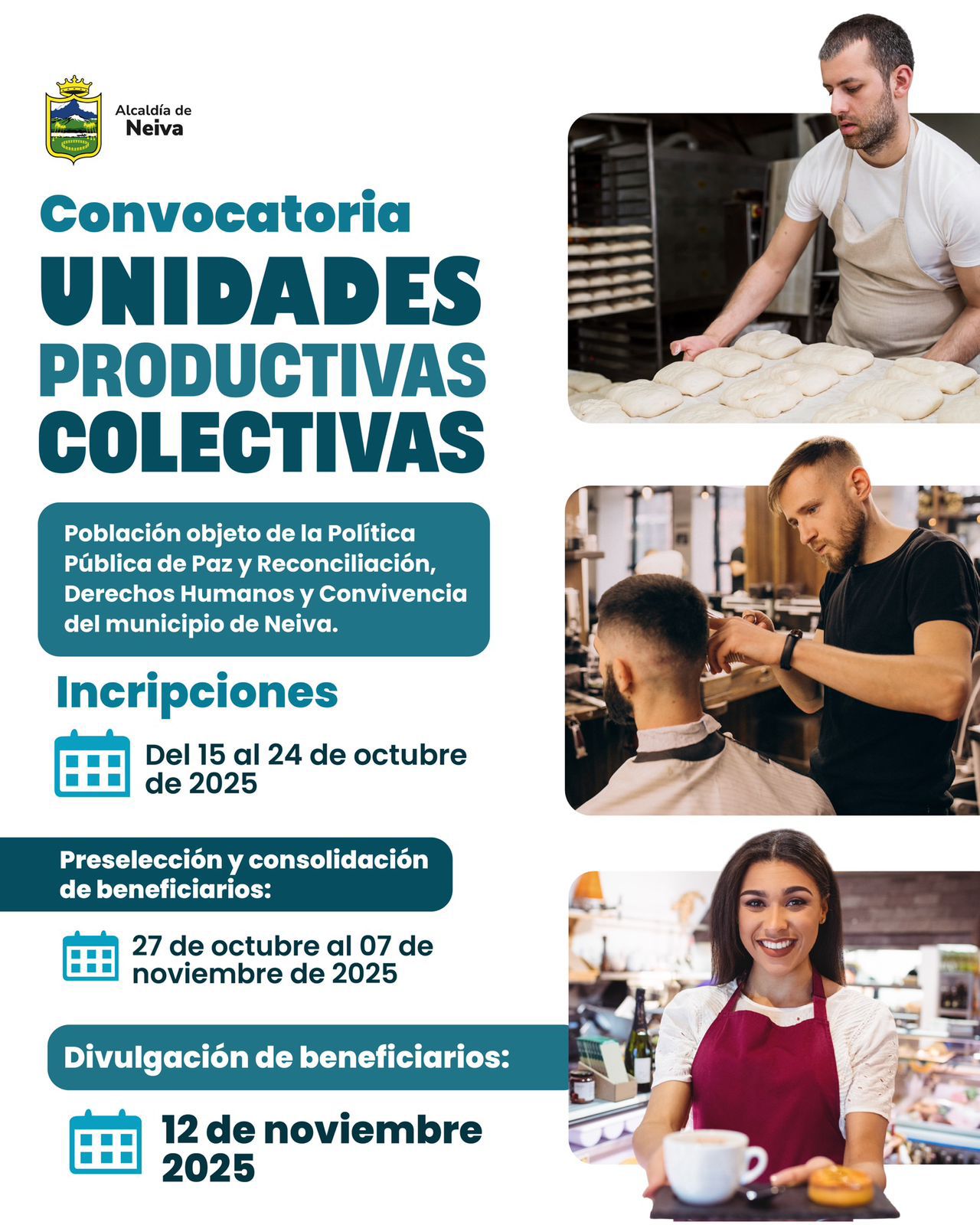 La Alcaldía de Neiva, a través de la Secretaría de Paz y Derechos Humanos, convoca a las comunidades y organizaciones de base para la conformación y fortalecimiento de Unidades Productivas Colectivas (UPC).