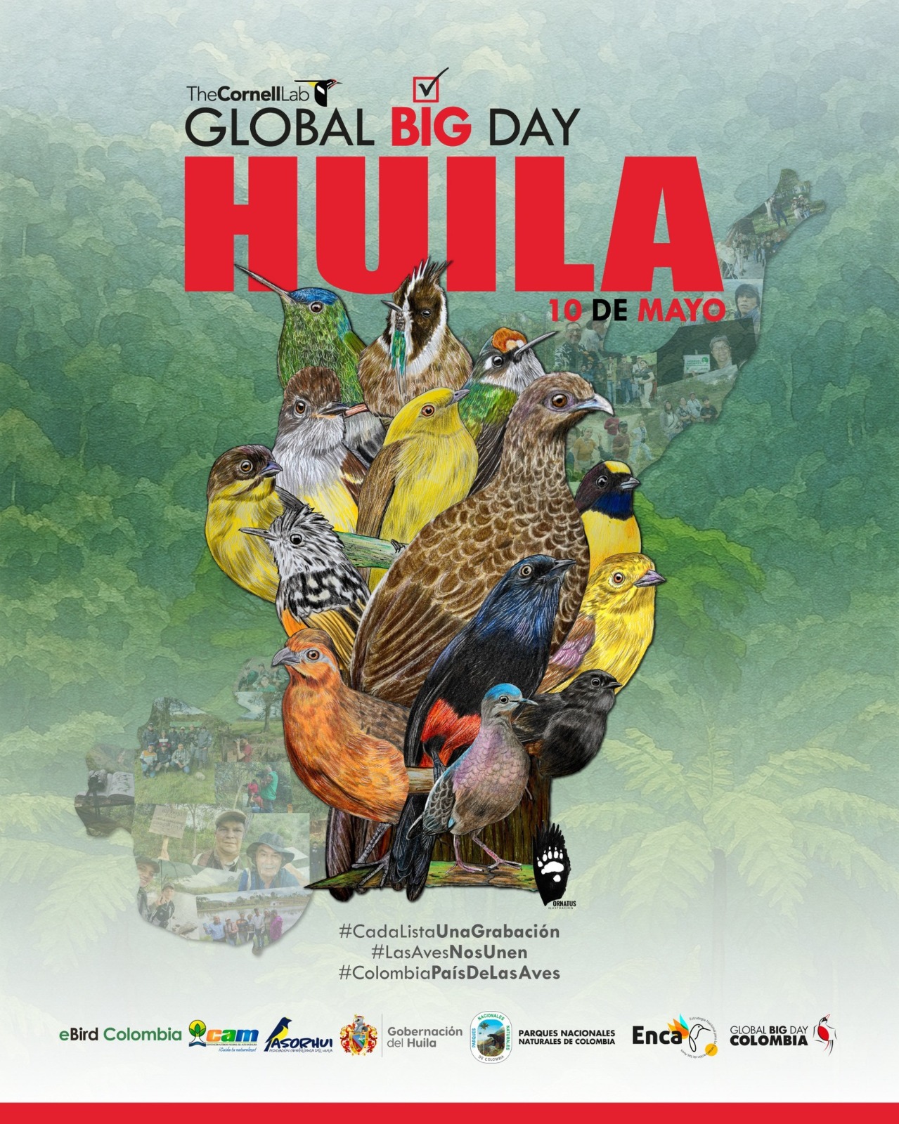 Con 70 rutas y la meta de registrar 500 especies, el próximo sábado 10 de mayo, el Huila se suma al evento de ciencia participativa más grande del mundo dedicado a la observación de aves.