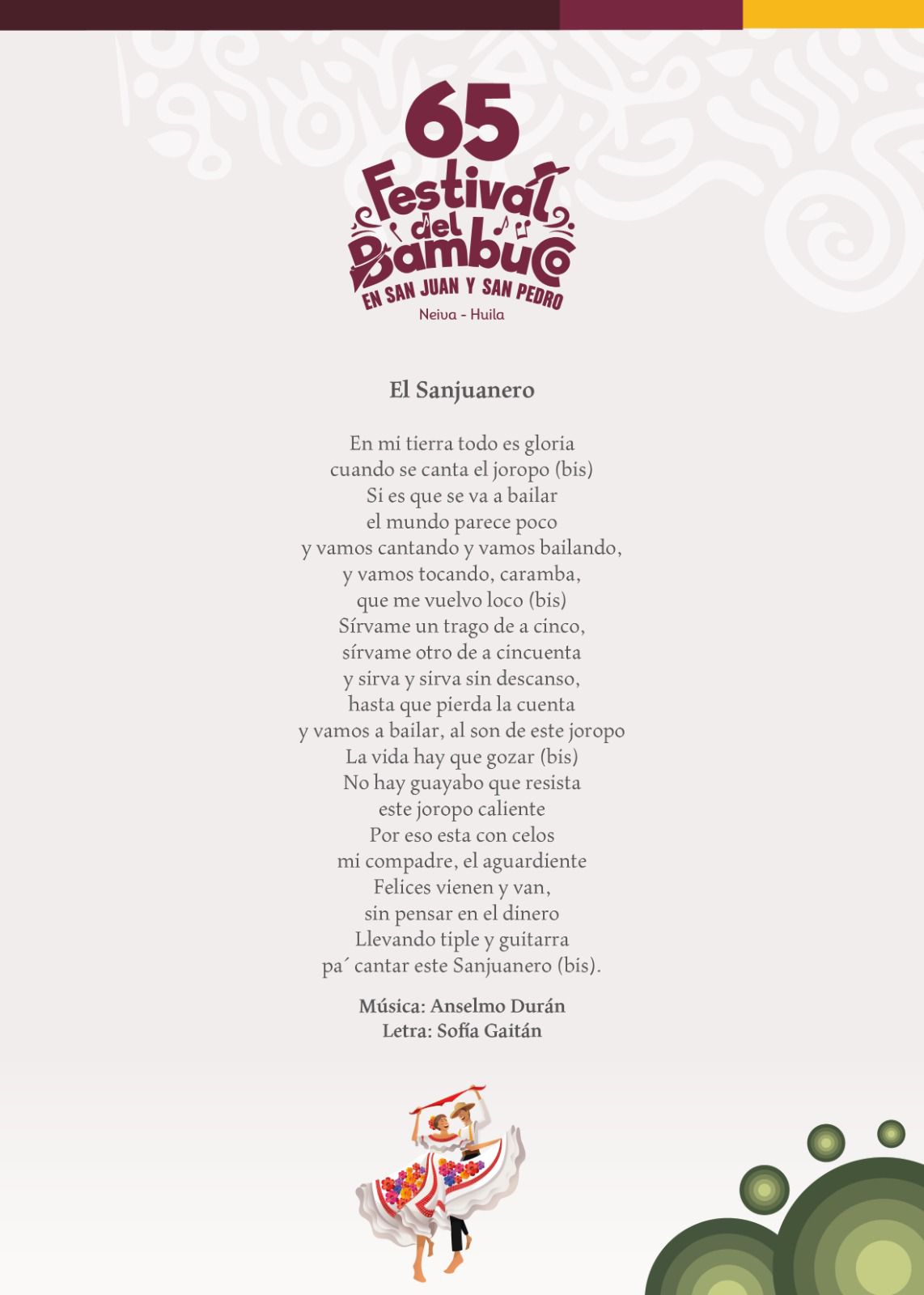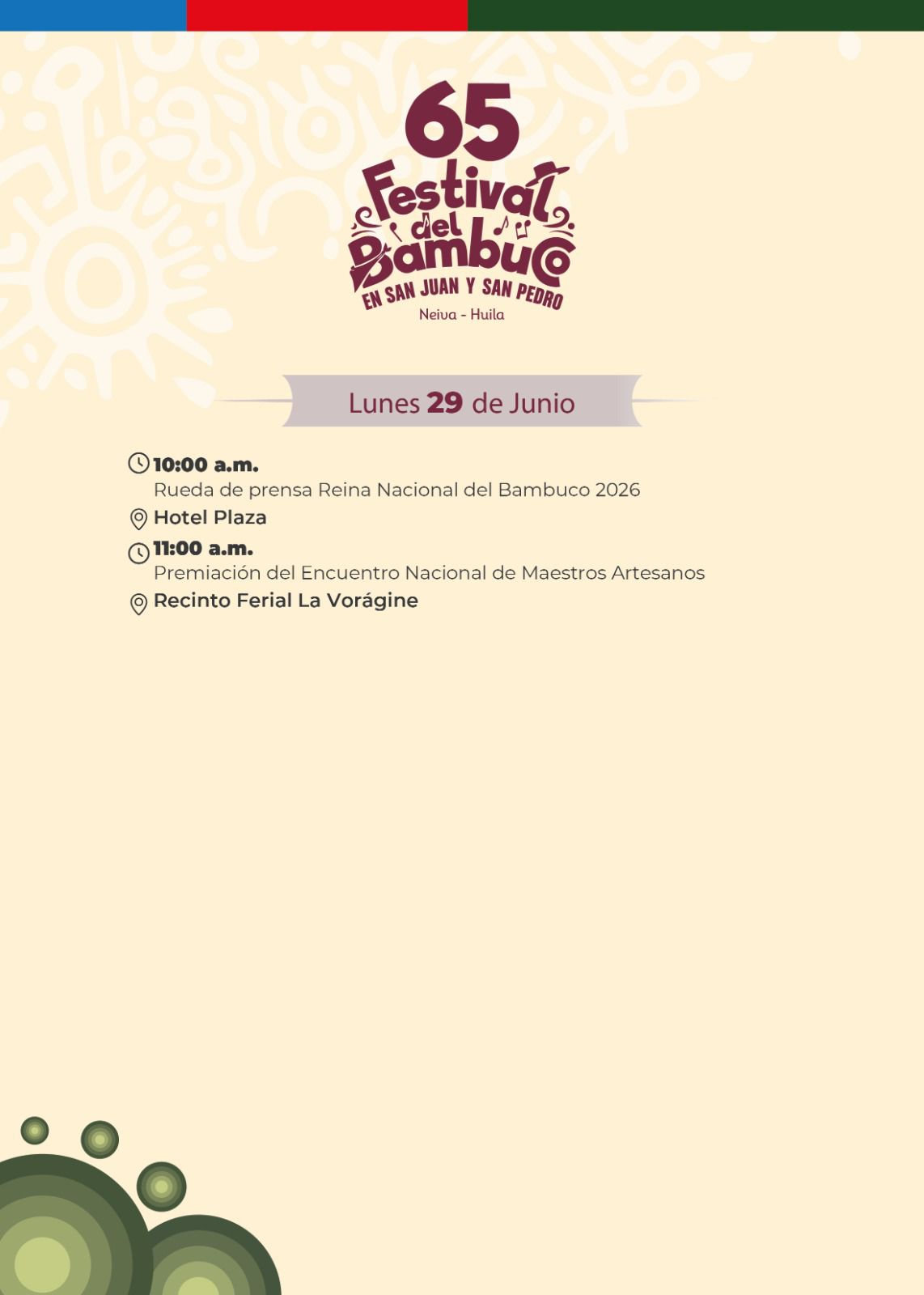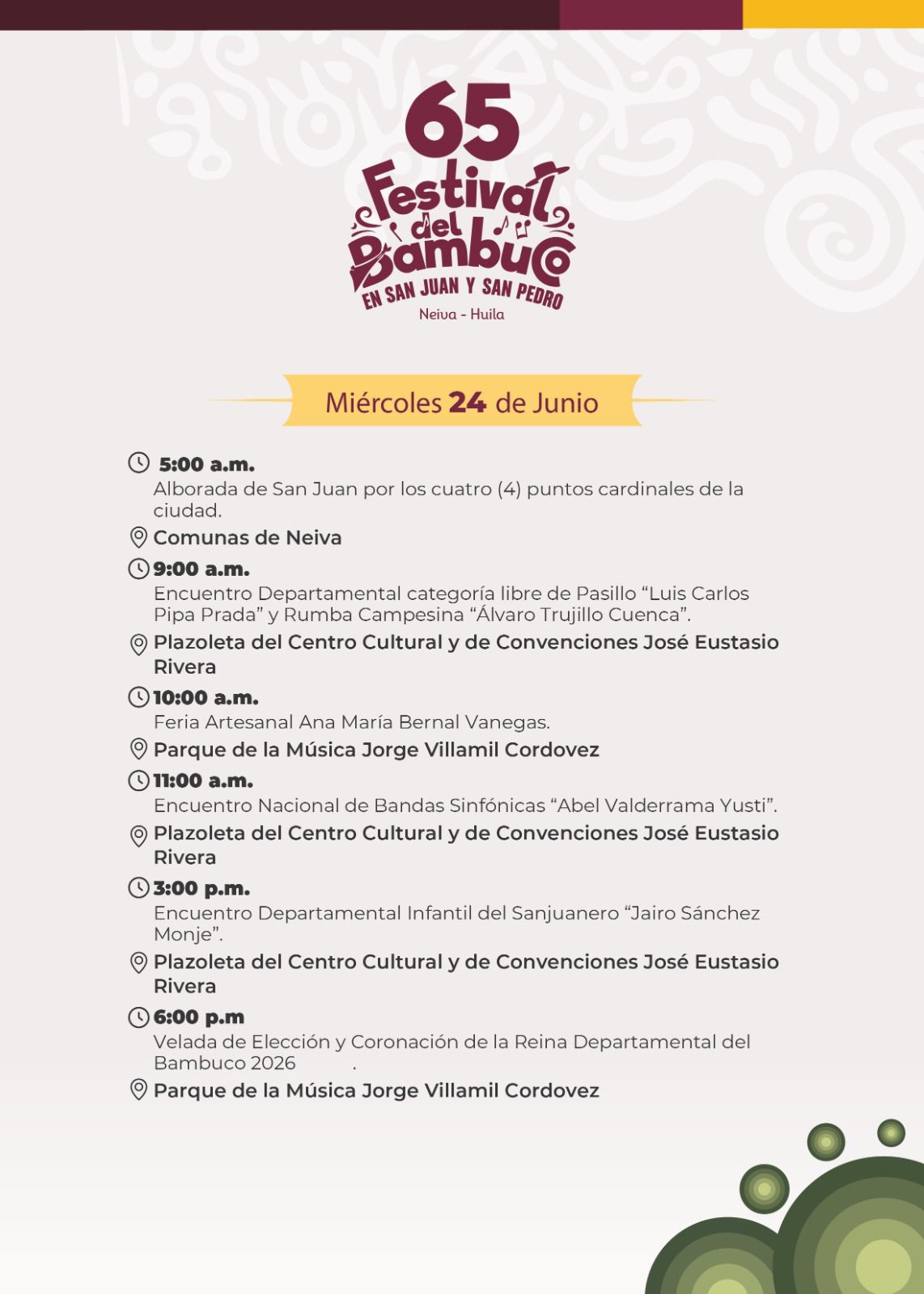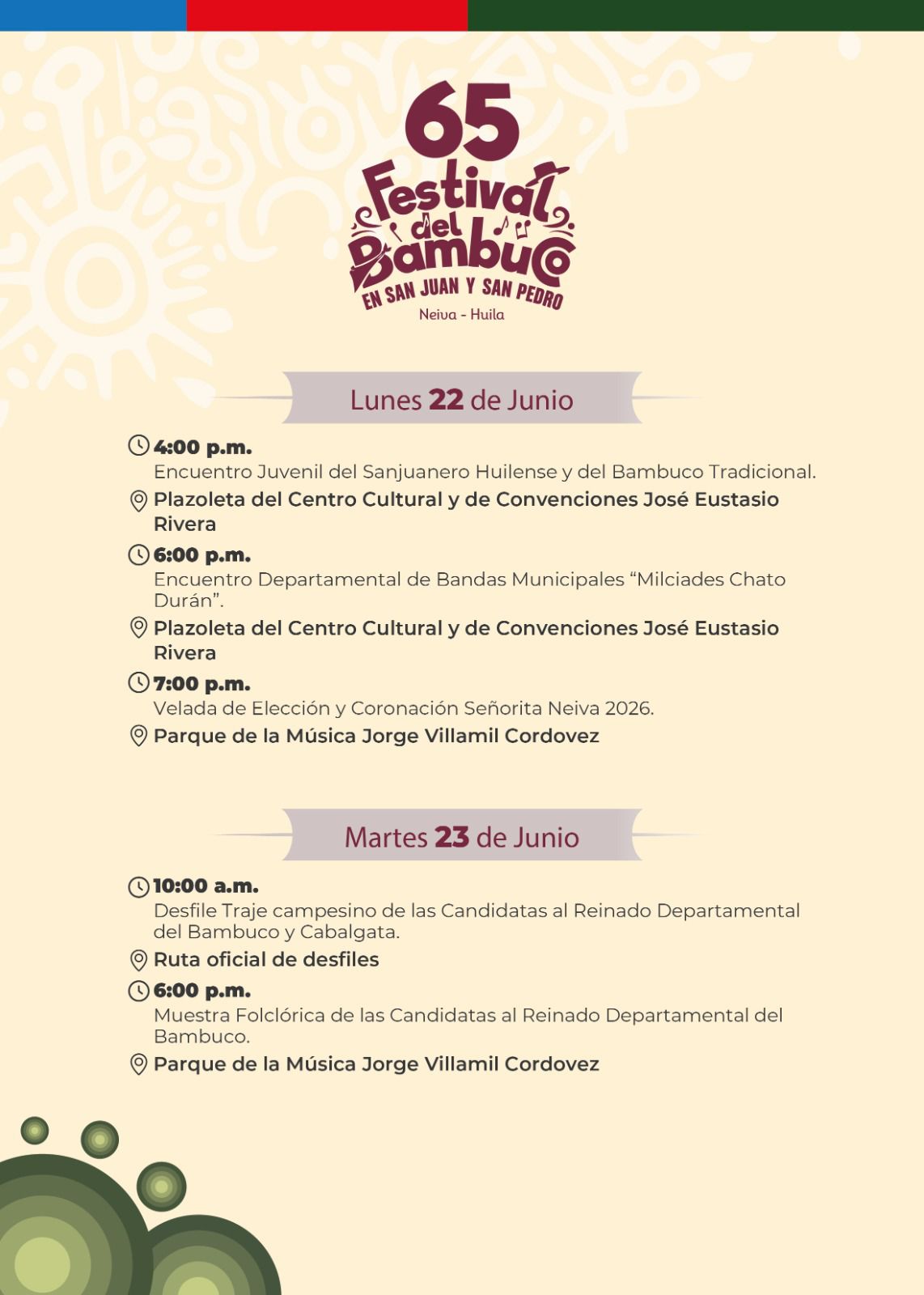 Esta es nuestra Programación Oficial del 65º Festival del Bambuco en San Juan y San Pedro 🌸🗓️