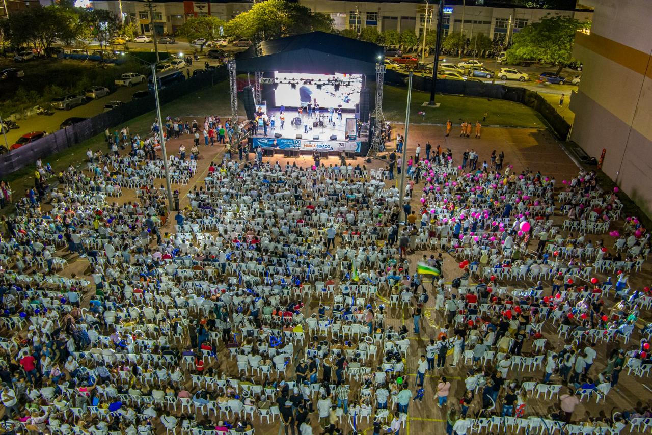 El evento se realizó en la plazoleta de eventos del centro comercial Unicentro, al sur de la ciudad, donde simpatizantes del senador se reunieron para manifestarle su respaldo de cara a estas elecciones primarias que definirán el orden de la lista cerrada al Congreso, de este partido.