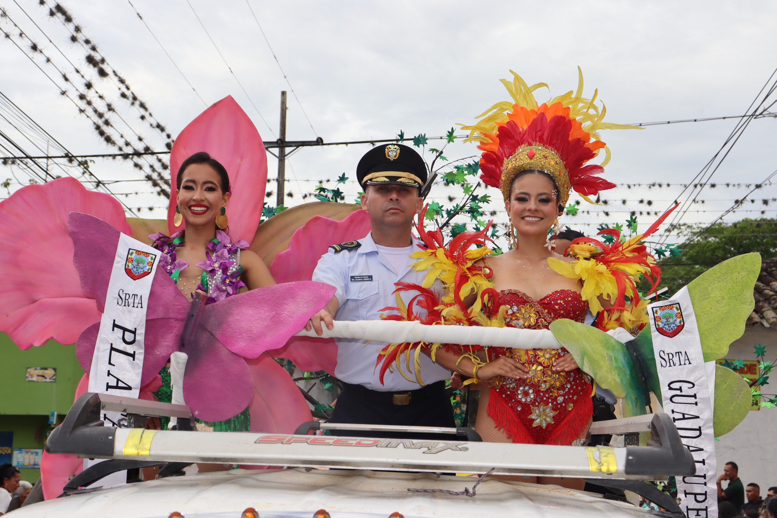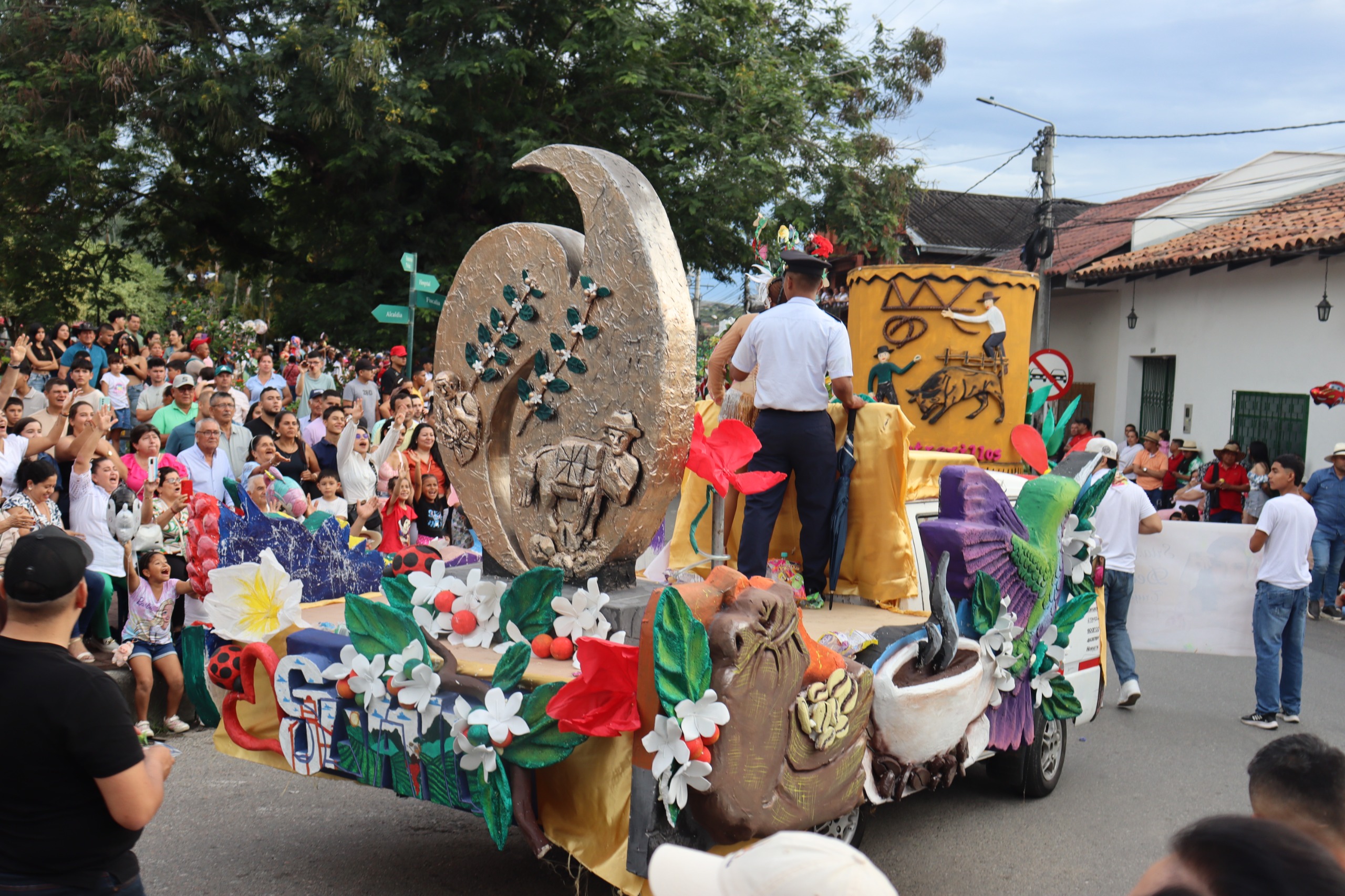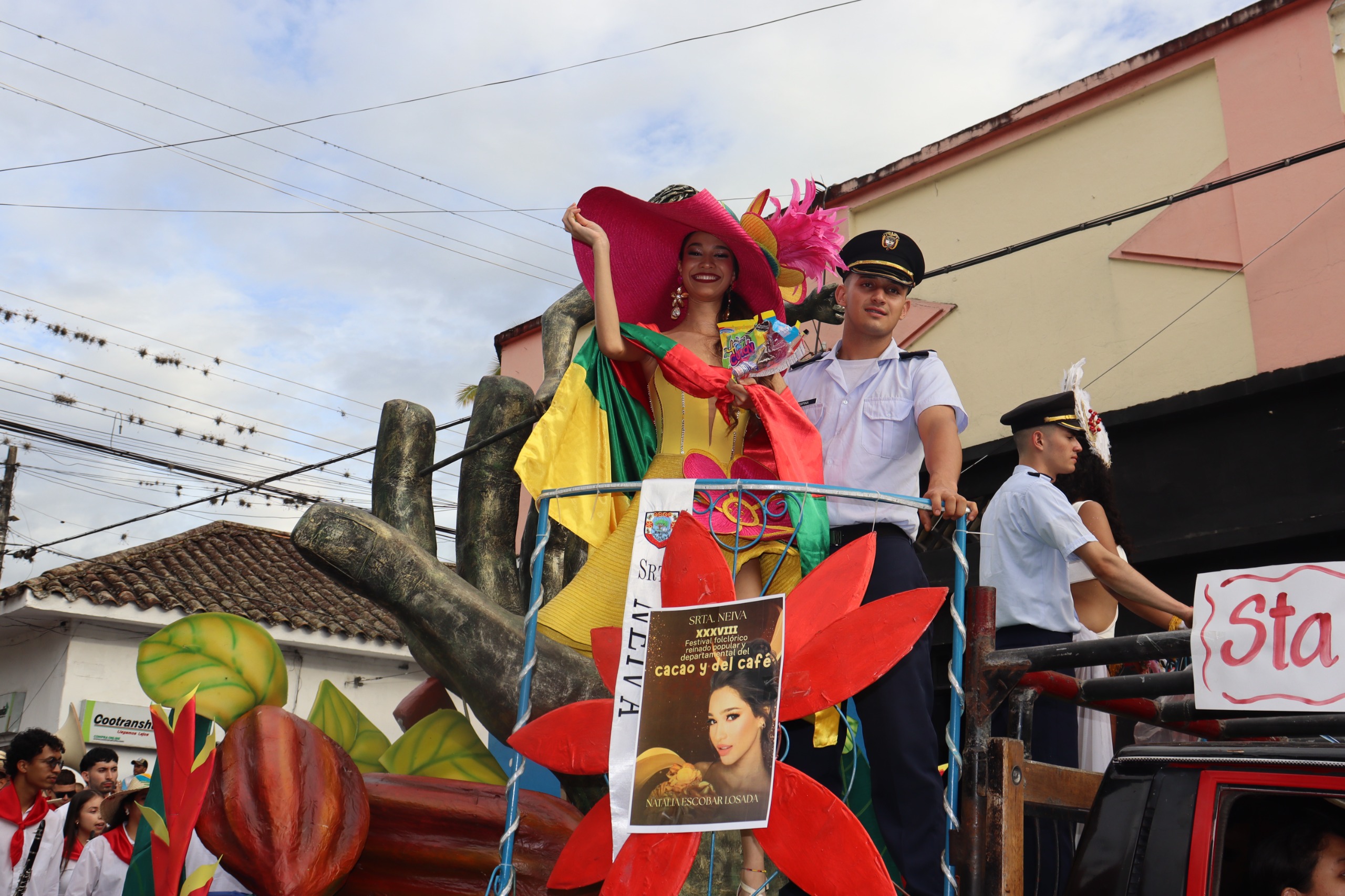 Las calles se vistieron de fiesta con las carrozas alegóricas que rindieron homenaje a los monumentos y símbolos que narran la historia y el espíritu giganteño: el Monumento a Matambo, la Iglesia San Antonio, el Páramo de Miraflores, la Guitarra, la Panela, la Ceiba de la Libertad, el Monumento a Mirthayú, las Festividades de San Padrinas en Potrerillos, y el Monumento al Café. Cada carroza, elaborada con esmero artesanal, fue un recorrido visual por la identidad cultural y la memoria del pueblo.
